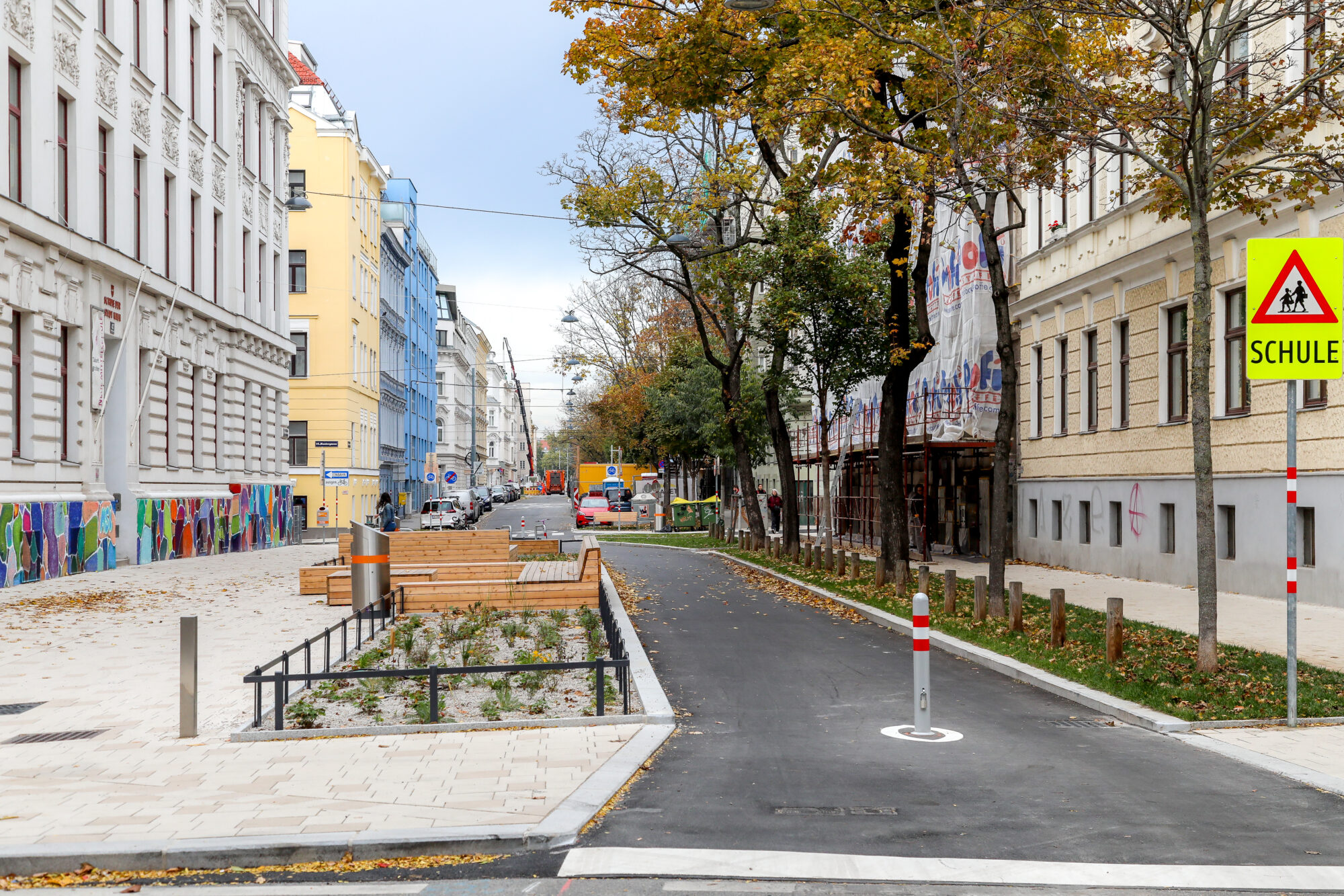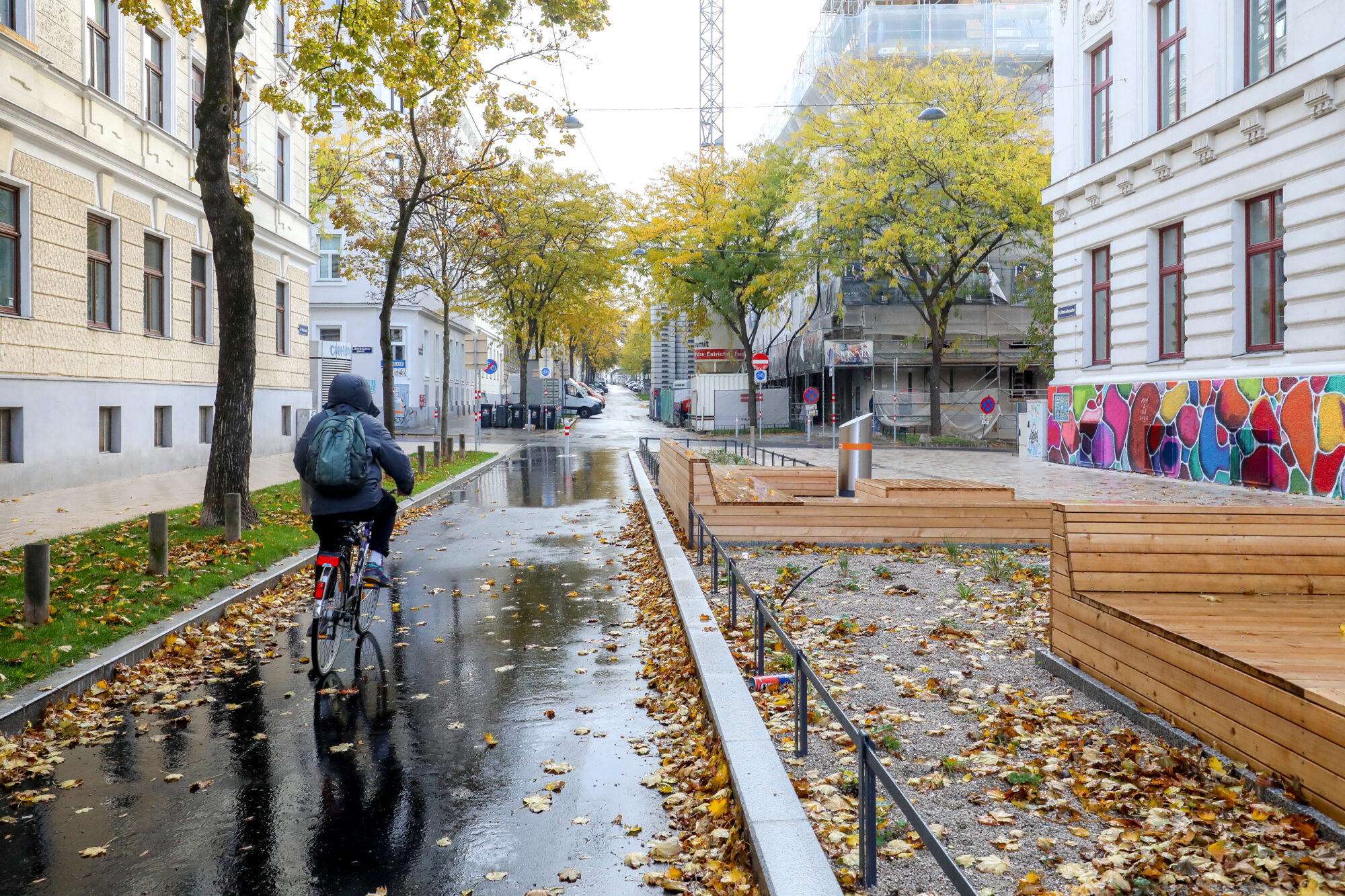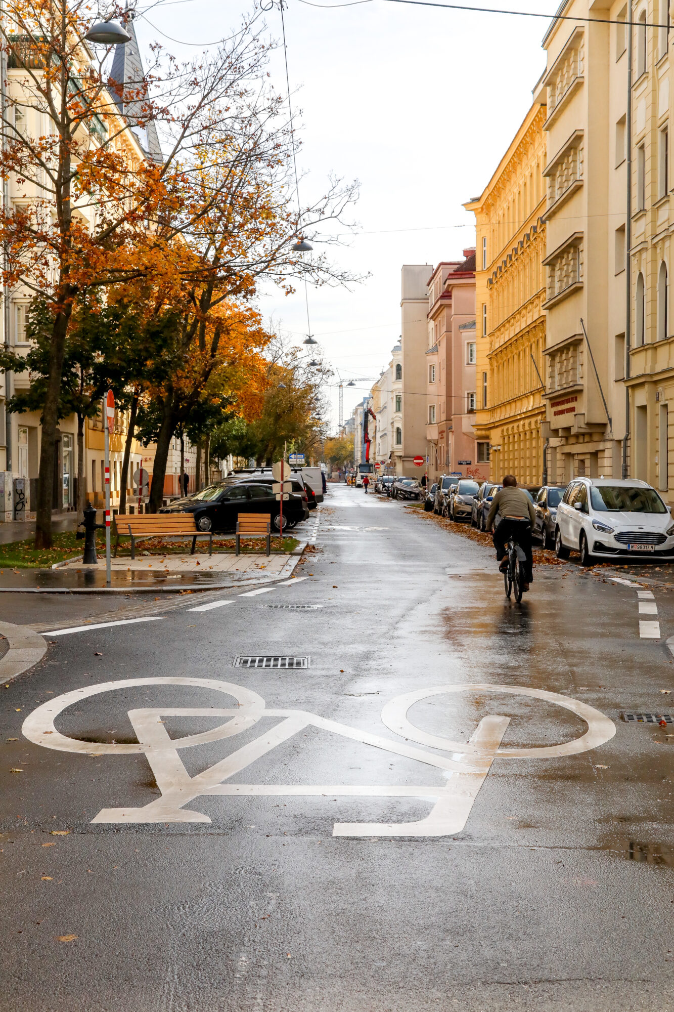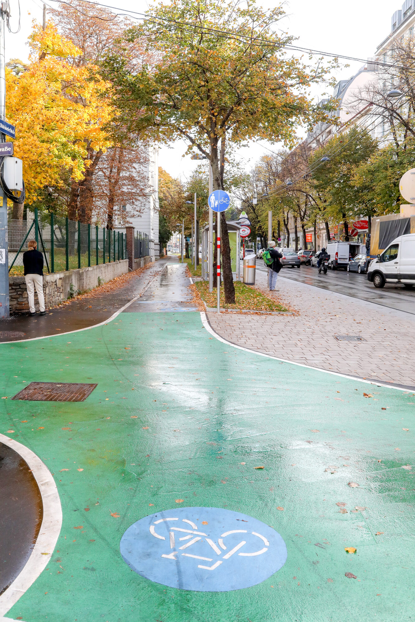 Während die Baumpflanzungen nach und nach im kühlen Herbst stattfinden, damit die Bäume optimale Bedingungen zum Anwurzeln haben, sind sowohl Radweg als auch Fahrradstraße bereits befahrbar. Eine wunderbar durchgehende, komfortable Verbindung vom Gürtel durch den 15. und weit hinein in den 14. Bezirk!