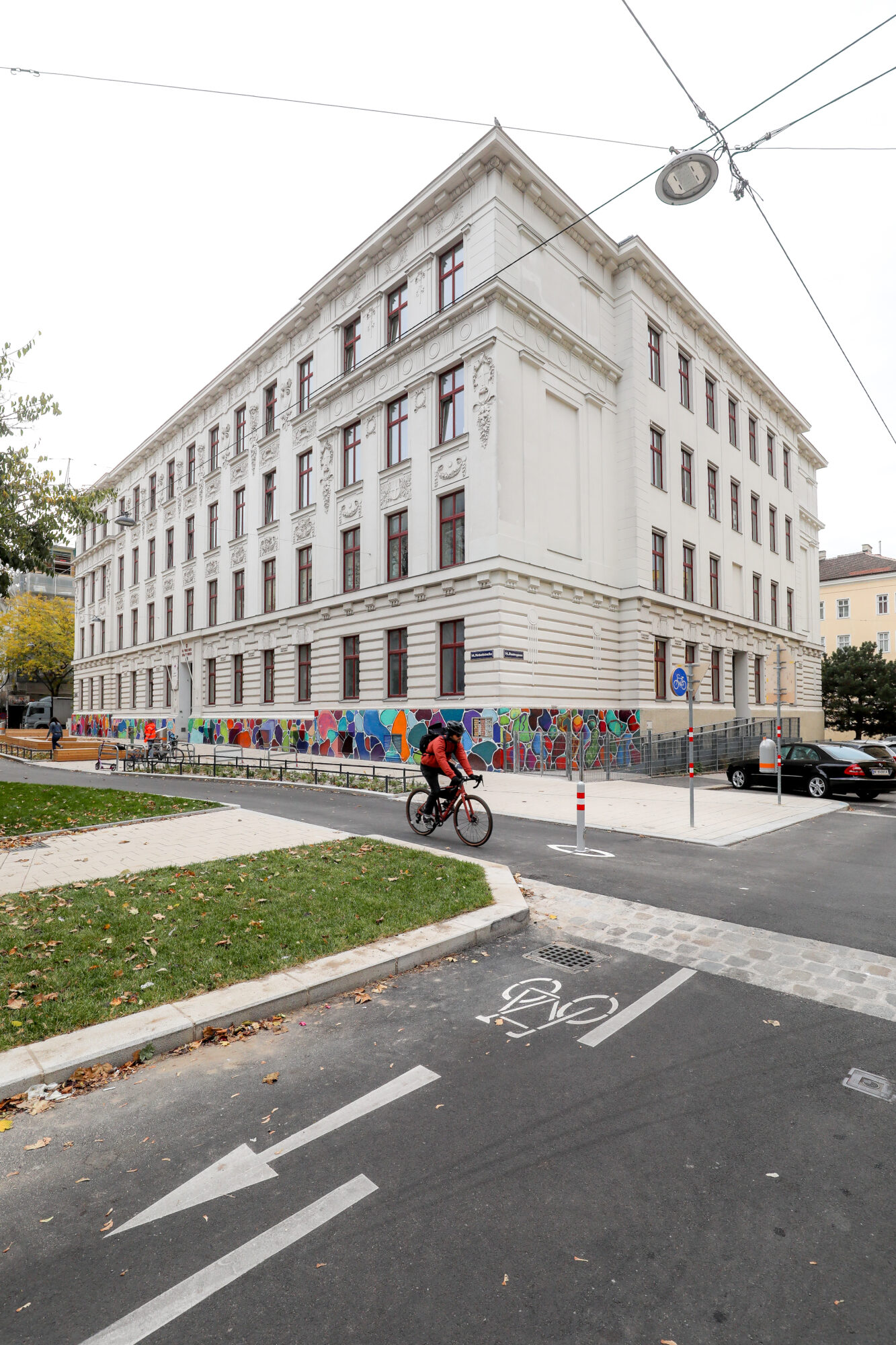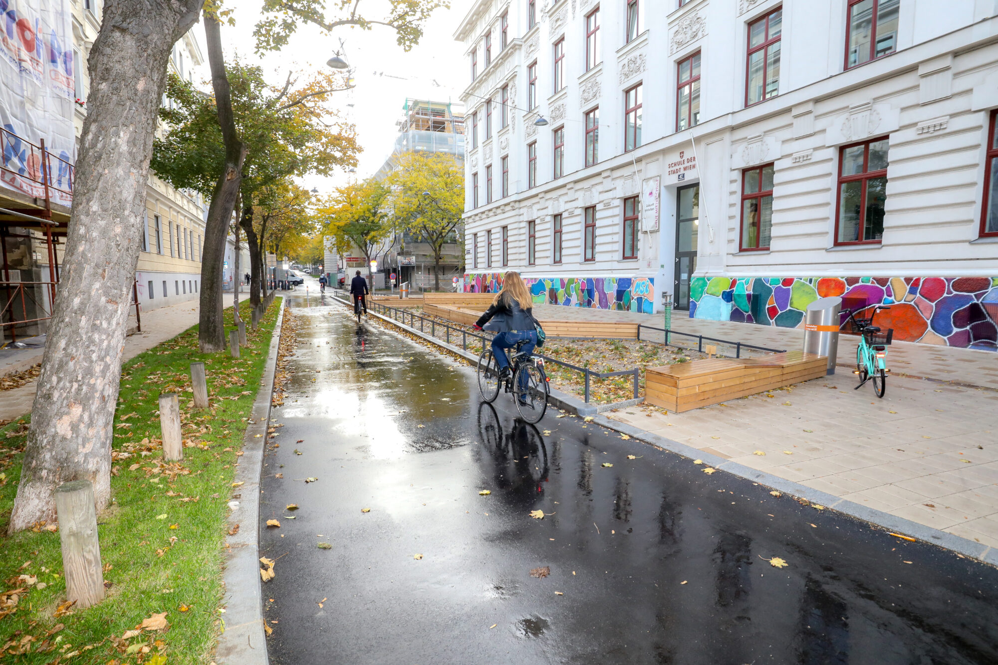 Über 4.000 Quadratmeter wurden im 2. Abschnitt der neuen Rad-Achse entsiegelt (zusätzlich zu den über 2.000 Quadratmetern Grünfläche des ersten Abschnitts) und zum Teil mit neuer, sickerfähiger Pflasterung versehen. Allen, die im Grätzel zu Fuß unterwegs sind, stehen nun neue Sitzbänke mit einigen Tischen für ein Päuschen zur Verfügung. Auch Trinkbrunnen und Fahrradbügel verbessern die Infrastruktur vor Ort.