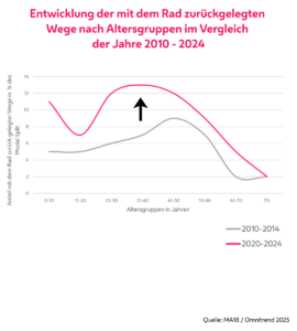 Verändert hat sich bei der jüngeren Generation der Anteil, der individuell motorisiert – also mit Auto oder Zweirad als Lenker bzw. Mitfahrer – absolviert wird. Dass der motorisierte Individualverkehr-Anteil von 22 auf 13 Prozent gesunken ist, dürfte sich laut Studie auch in weiterer Folge auswirken. Denn das Nutzungsverhalten, speziell auf das Auto bezogen, wird laut Untersuchungen beim Älterwerden mitgenommen. Ab 30 Jahren ändert sich die Pkw-Nutzung demnach kaum mehr. Zugleich würden junge Erwachsene ihre Mobilitätsgewohnheiten zu einem gewissen Grad an die eigenen Kinder weitergeben. Hier seien Trends zu mehr Radfahren und Zu-Fuß-Gehen wahrnehmbar.